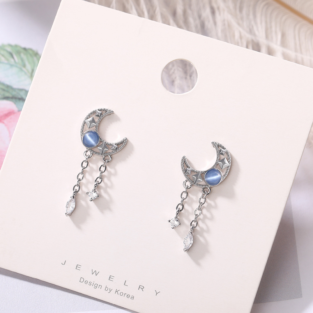 brincos coloridos com borlas de lua vazada, frescos, doces, simples, de nicho, estilo floresta, brincos para estudantes