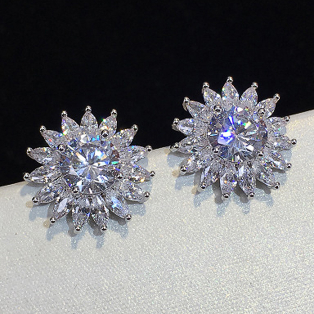 Transmissão ao vivo dos novos e lindos brincos grandes de zircónia de girassol brilhantes, joias criativas e versáteis para venda por grosso