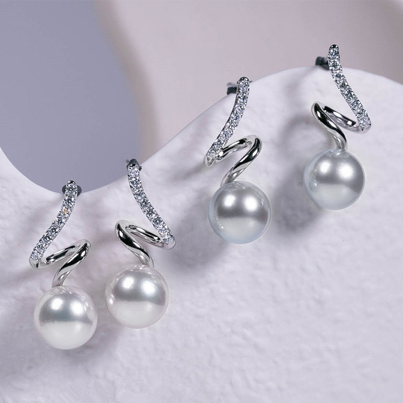 brincos novos de estilo japonês e coreano, brincos de pérolas de imitação geométricas da moda, brincos espirais de design simples