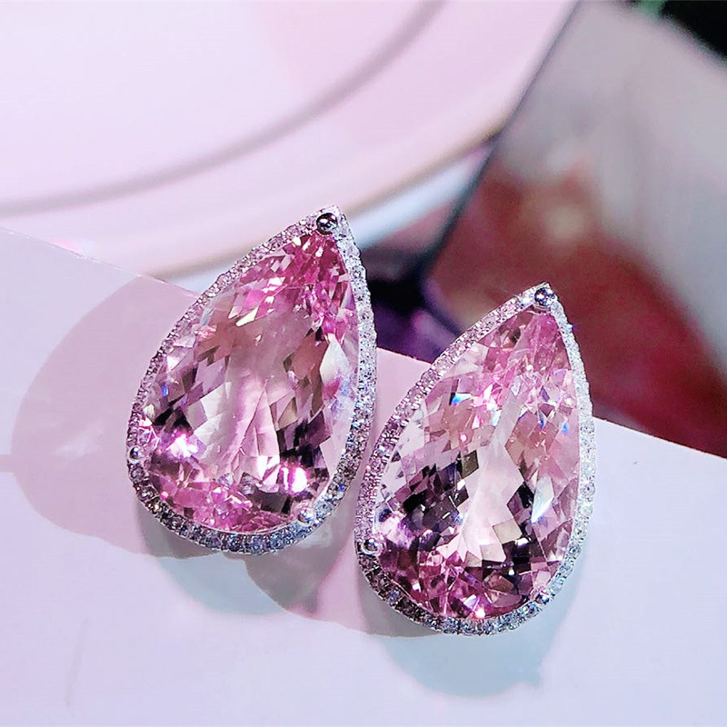 Brincos europeus e americanos de novo estilo, brincos em forma de pêra, gota de água, diamante rosa, zircónia, para mulheres, presente de dia dos namorados para namorada