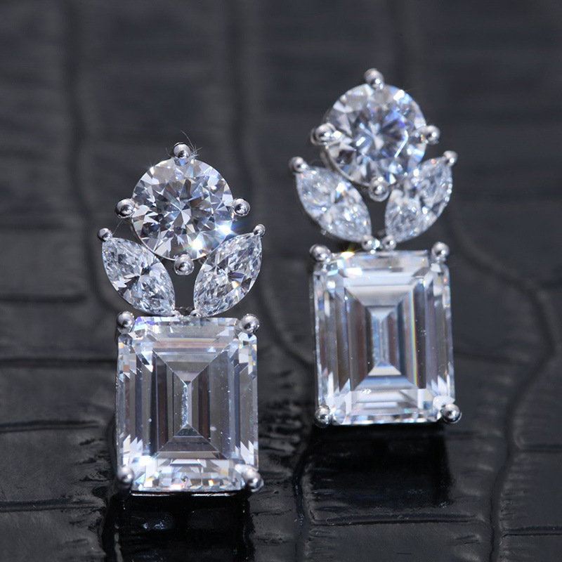 Brincos de diamante quadrado com zircónia e simulação de moda de comércio eletrónico, estilo europeu e americano, brincos super brilhantes de diamantes