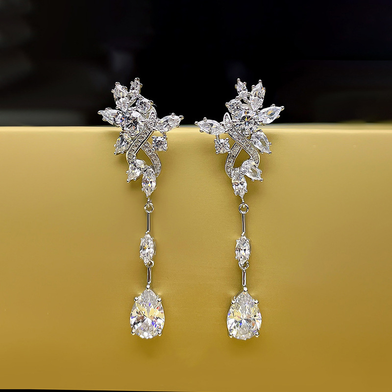 Brincos estilo frio europeu e americano, brincos longos retrô de noite, simples, gota d'água, zircônia, novo, comércio eletrônico