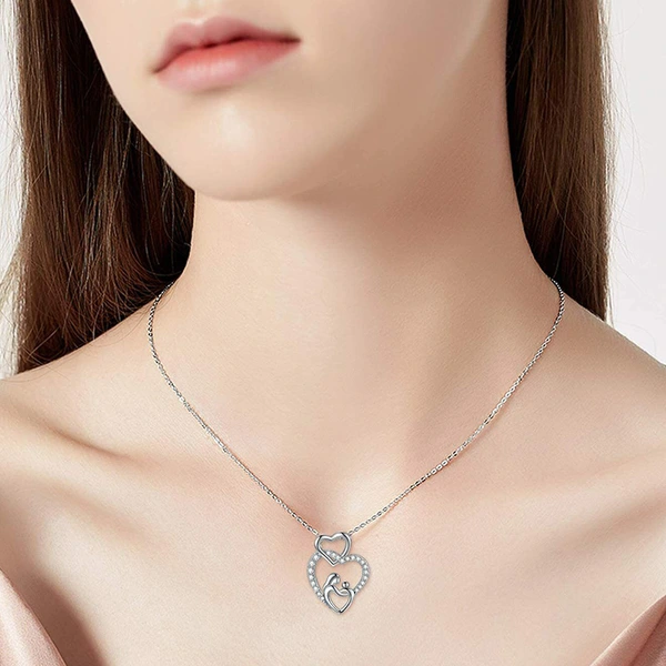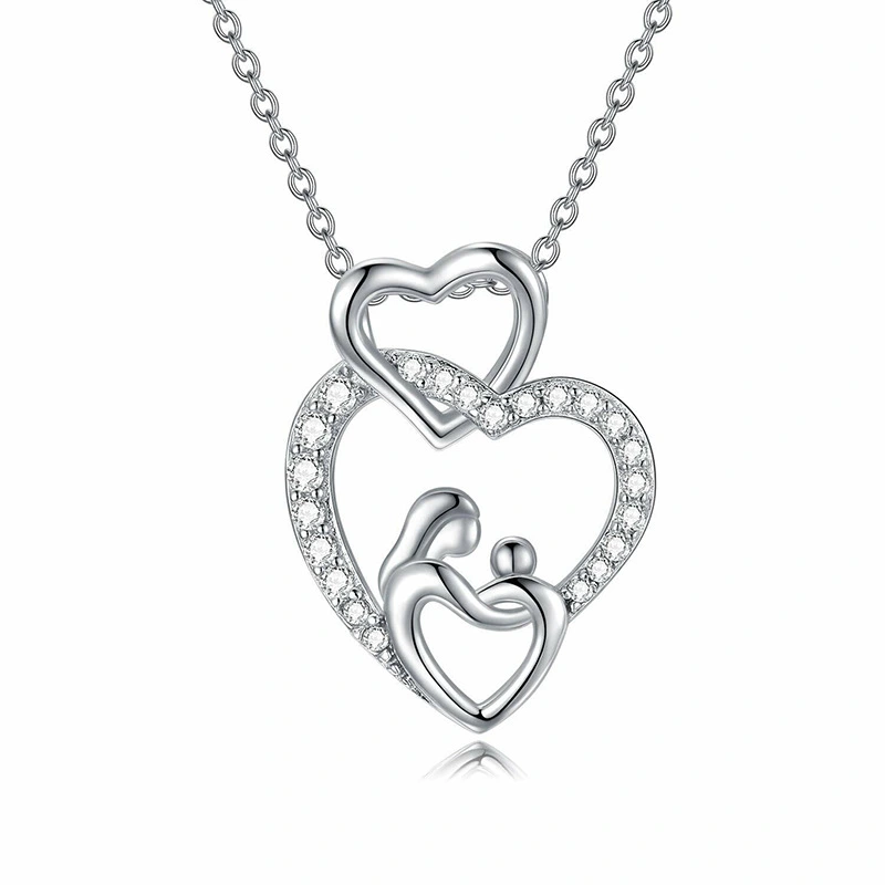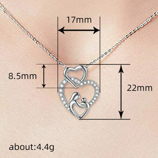 Colar com pendente de abraço de mamã e bebé, microzircónia incrustada, joia simbólica, design elegante de coração