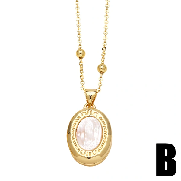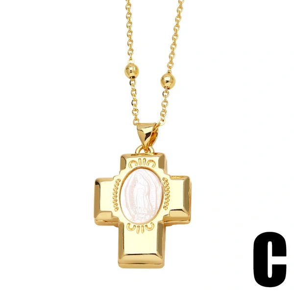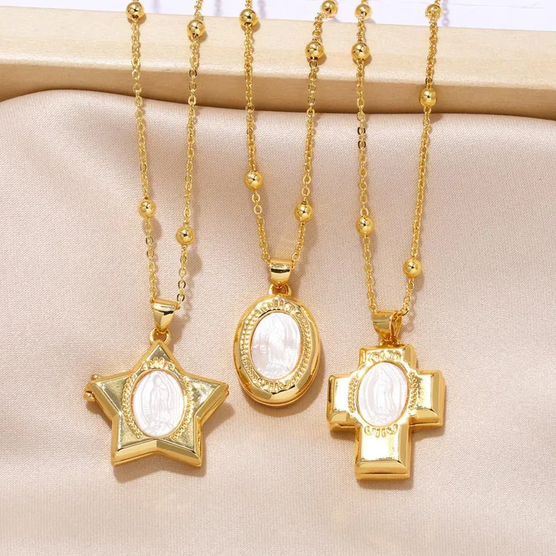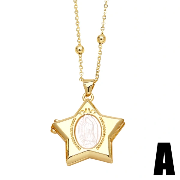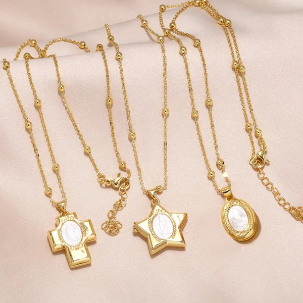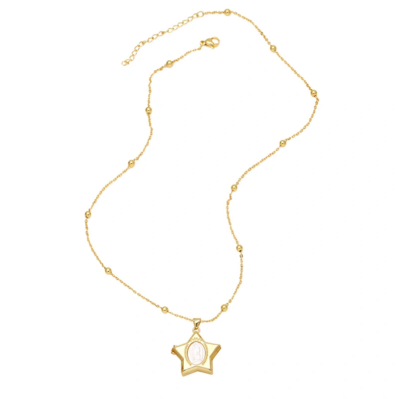 Colar com pingente de cruz banhado a ouro, estrela de cinco pontas, corrente para clavícula da Virgem Maria nkq40