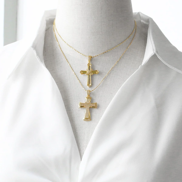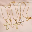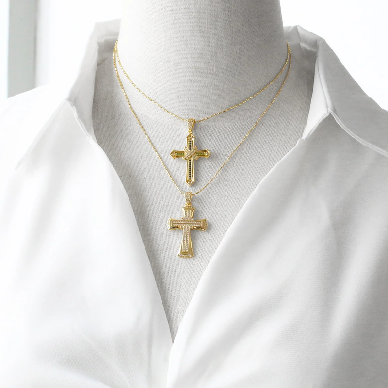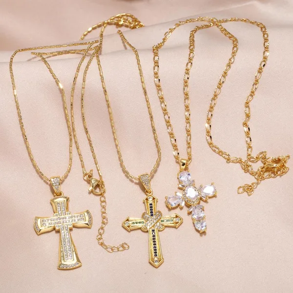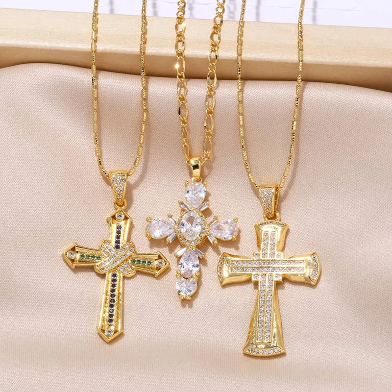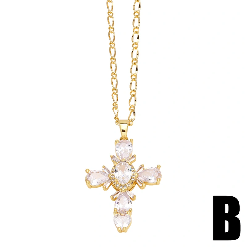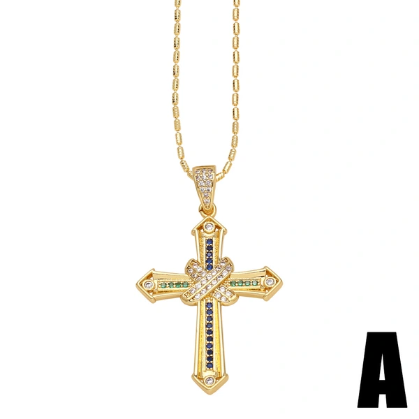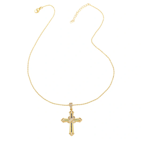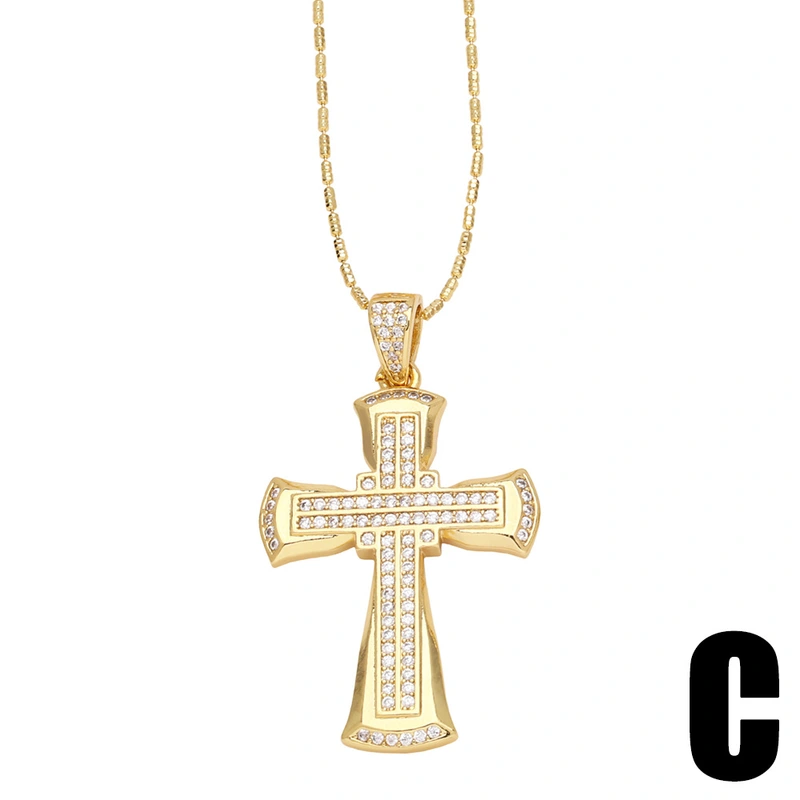 Colar com pingente de cruz europeu e americano, mais vendido, personalidade, hip-hop, com zircônia incrustada, banhado a ouro, corrente para clavícula nkb157