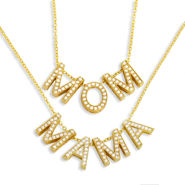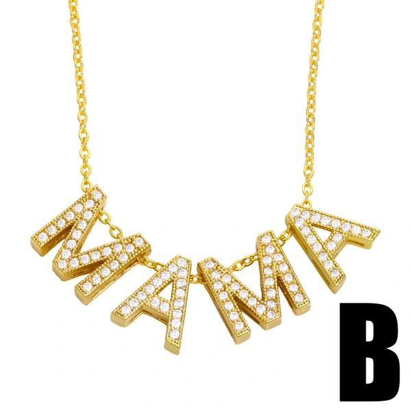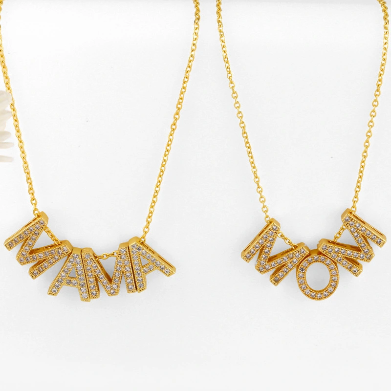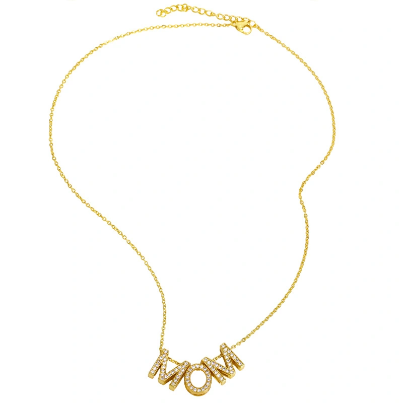Colar com pingente de diamante para mãe, presente de dia das mães para mulheres, com letra de mãe, joia nku57