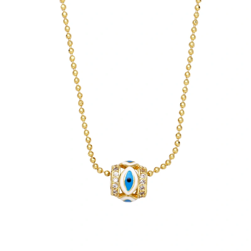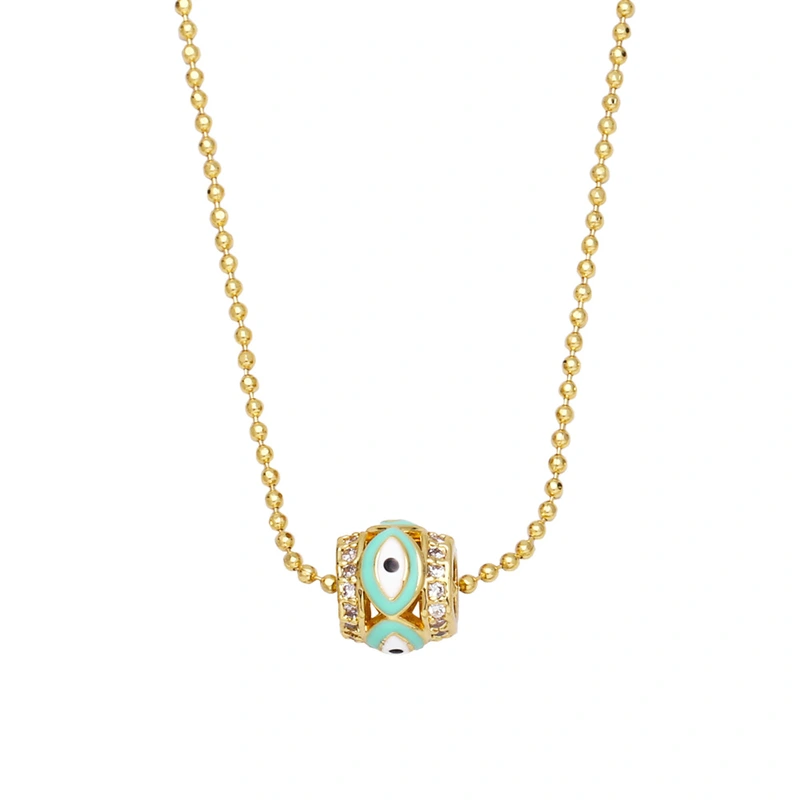 Colar com pingente de olho de diabo cilíndrico, joia europeia e americana, moda feminina, colar com olhos combinando nkb125