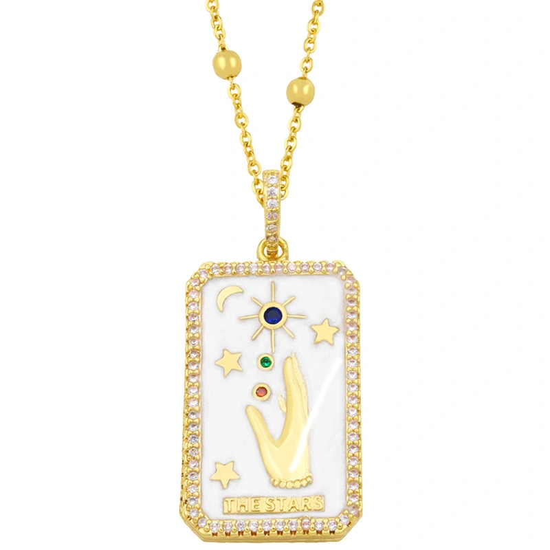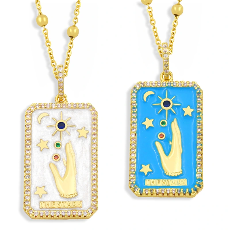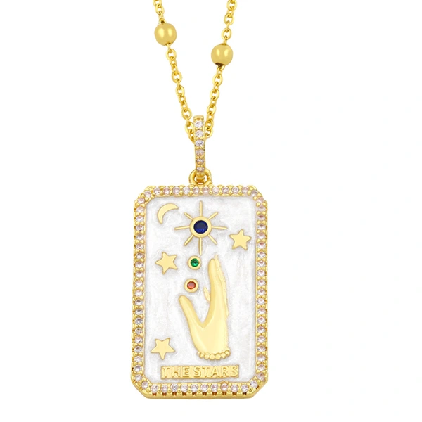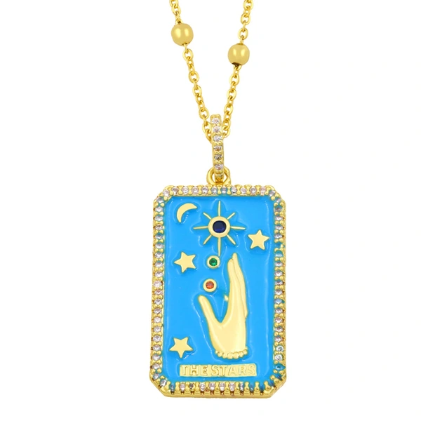 colar com pingente de tarô estrela nova, joias europeias e americanas com zircônia incrustada em óleo nkz12