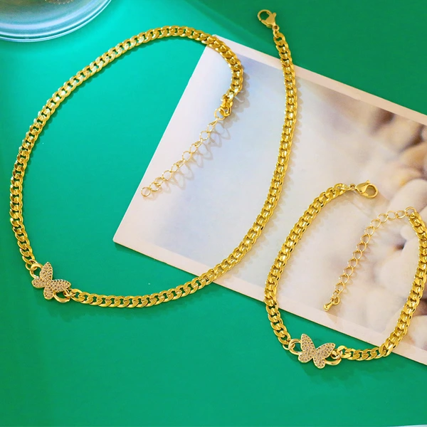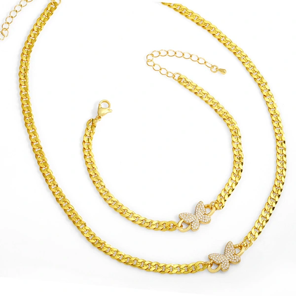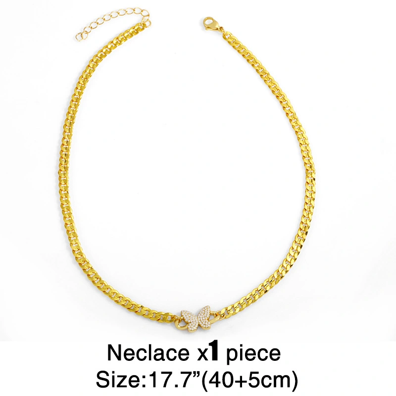 Colar cubano com costura borboleta, estilo coreano frio, corrente de metal para clavícula, joias femininas da moda, nkv83