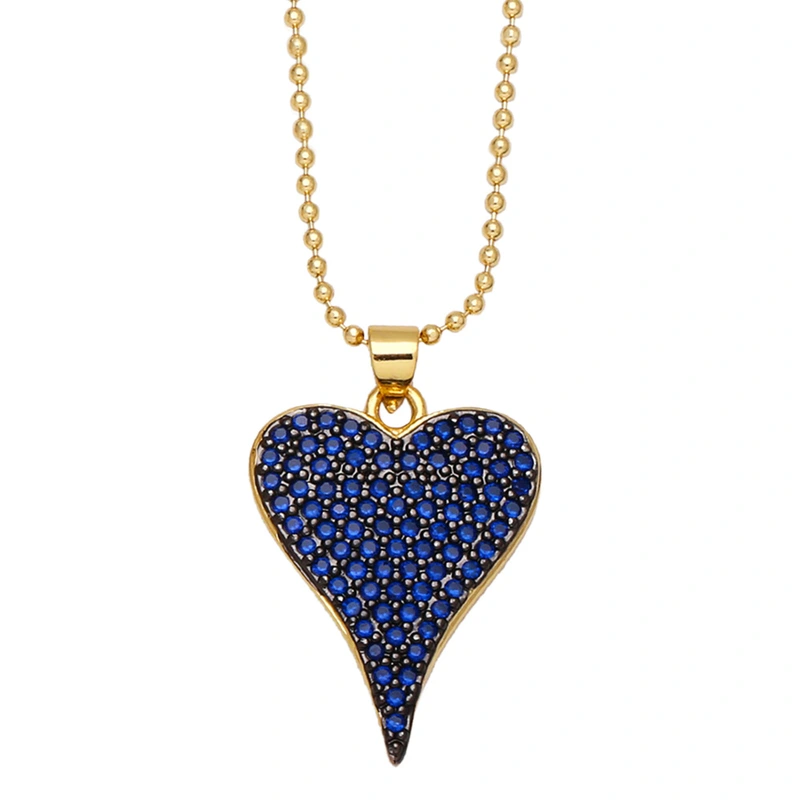 Novo produto com transmissão ao vivo, simulação de temperamento, pendente de coração do oceano, colar triangular, colar retro com coração pulsante