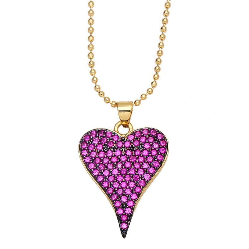 Colar de amor feminino europeu e americano, moda cor zircônia pêssego pingente de coração personalidade temperamento em forma de coração corrente de clavícula nkb117