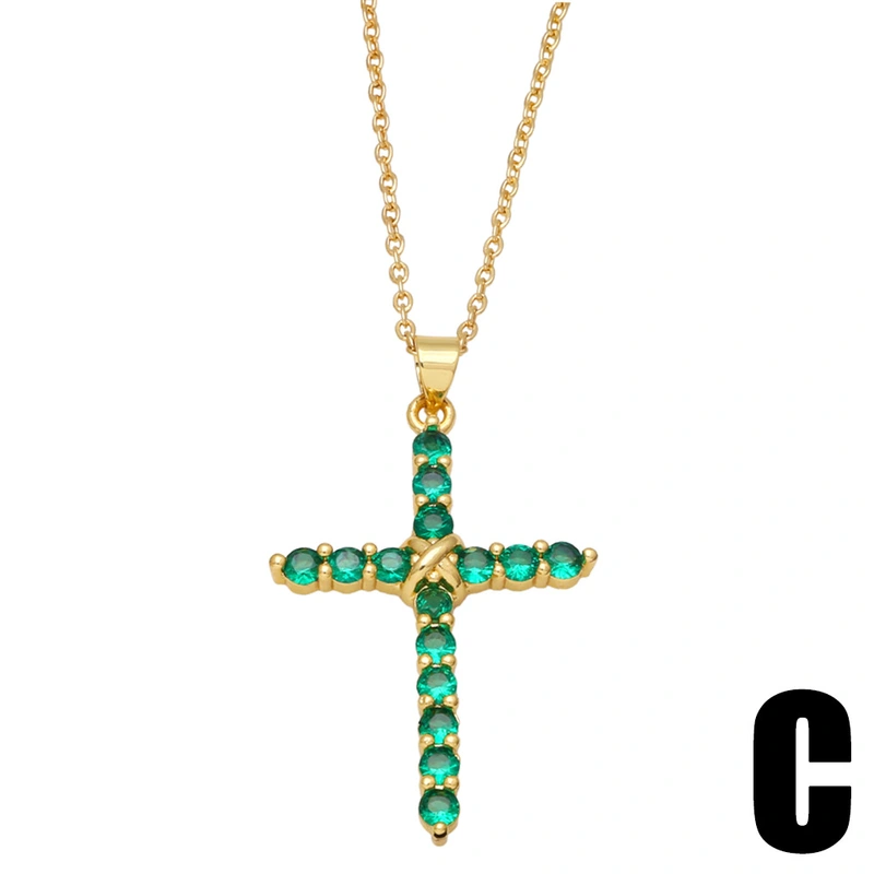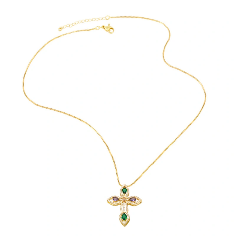 Colar de clavícula com cruz esmeralda de zircônia, design de nicho, novo, 2023, atacado, nkb302