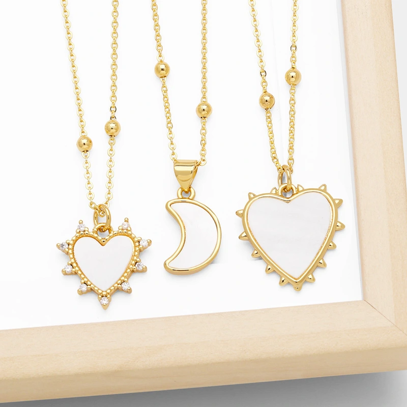 Colar de coração com gota de óleo da moda, mais vendido, design de nicho, pingente de lua de alta qualidade, colar de clavícula feminino nkb851