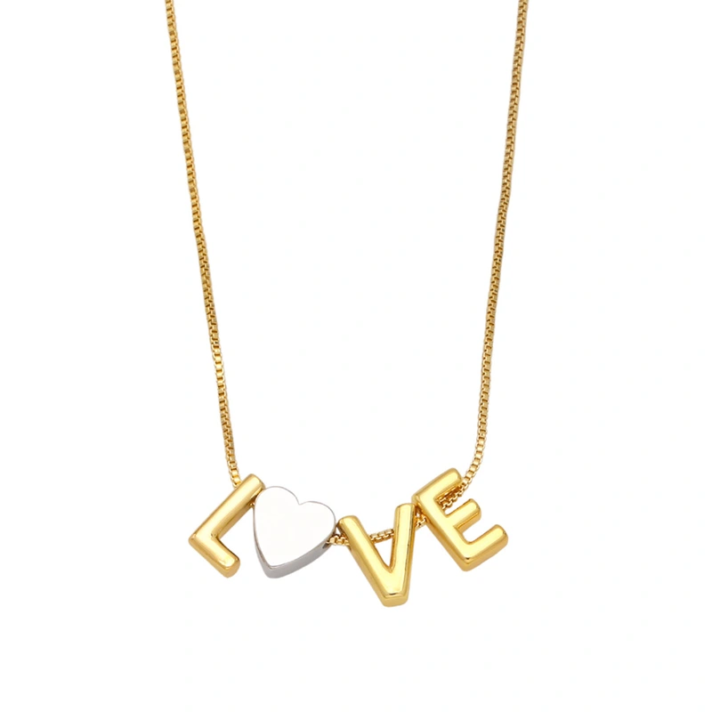 Colar de coração de amor europeu e americano, moda simples, combinação de letras, pingente de mãe e clavícula, corrente feminina nkb219