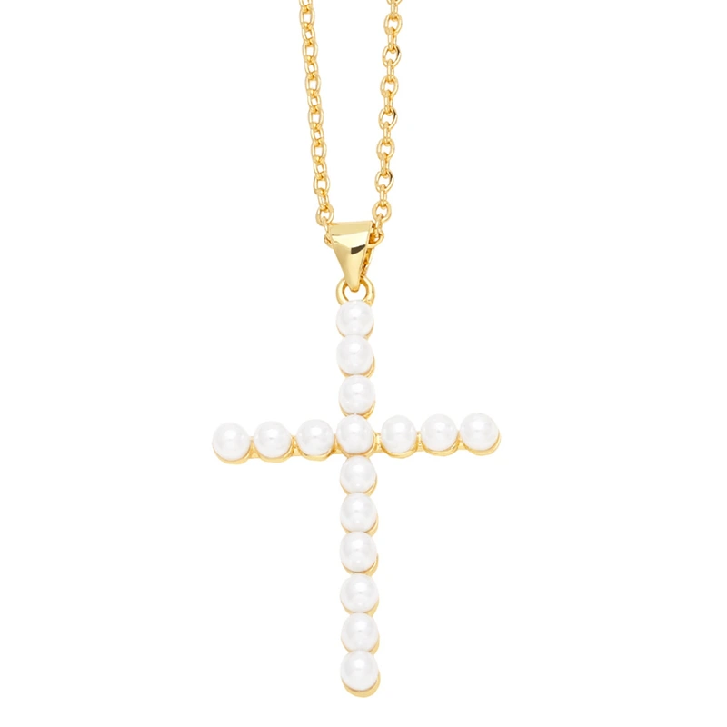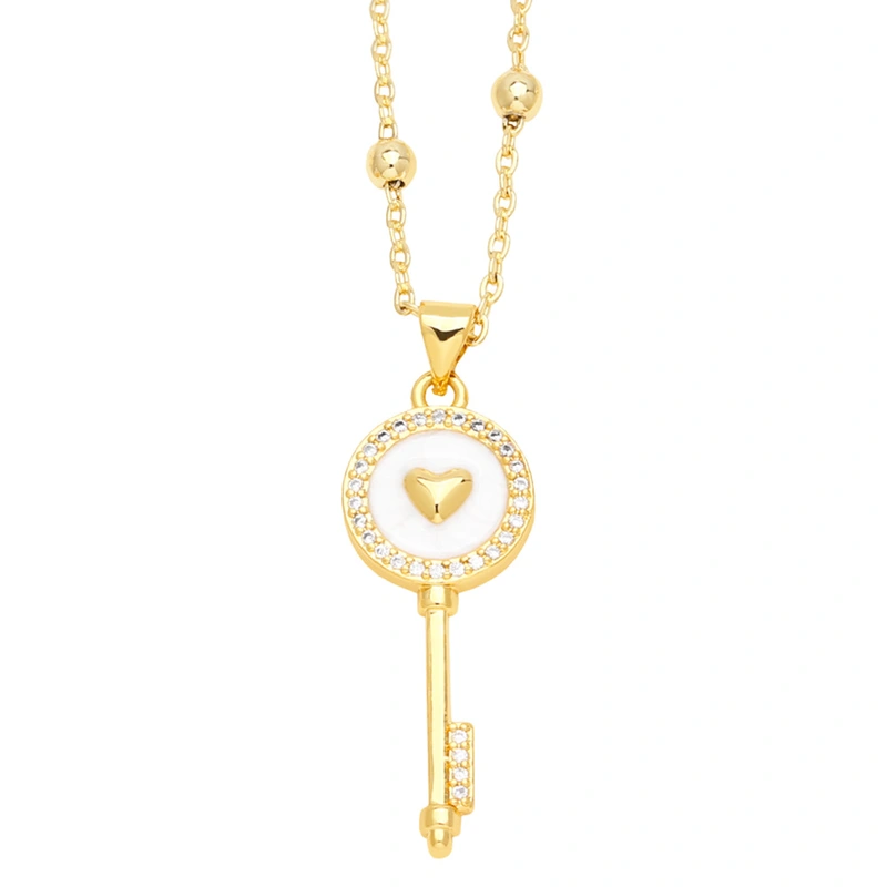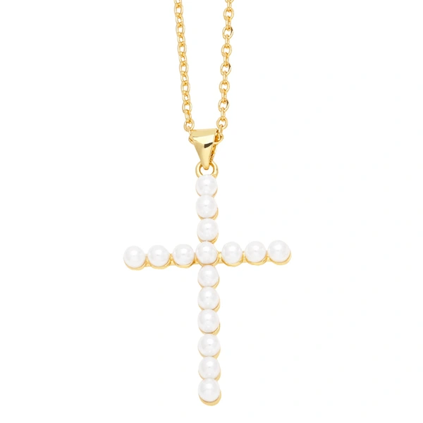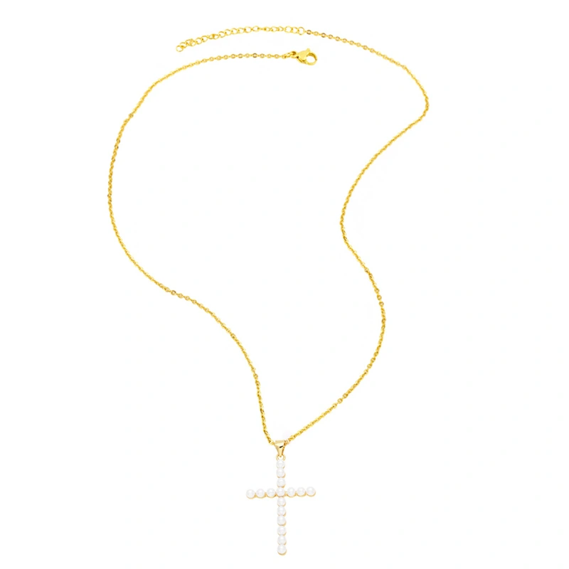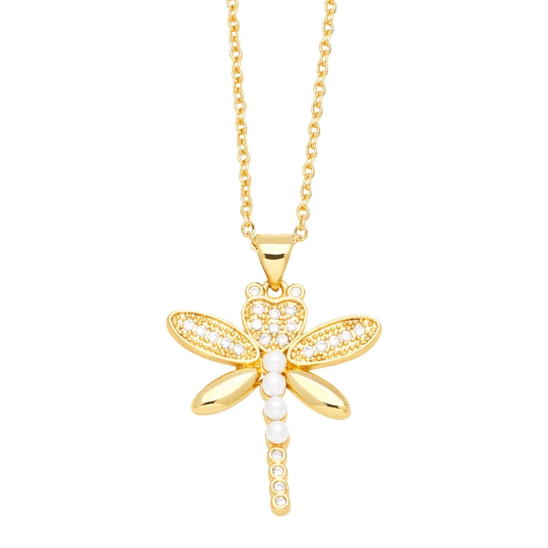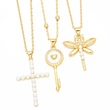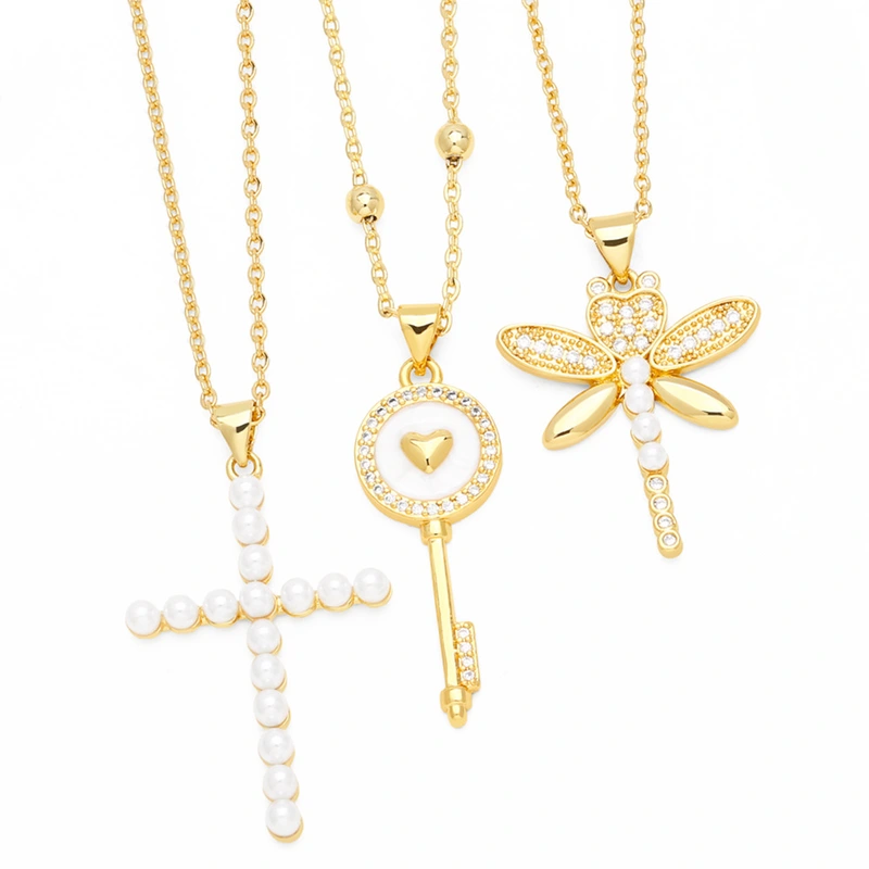 Colar de cruz de pérolas incrustadas com temperamento simples, design de nicho feminino, colar de clavícula de libélula com chave de amor nkn49