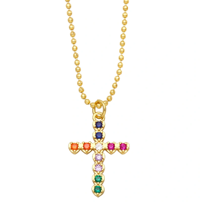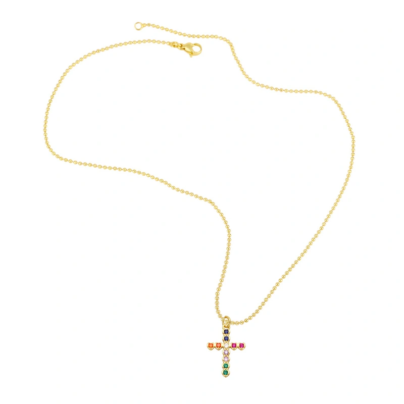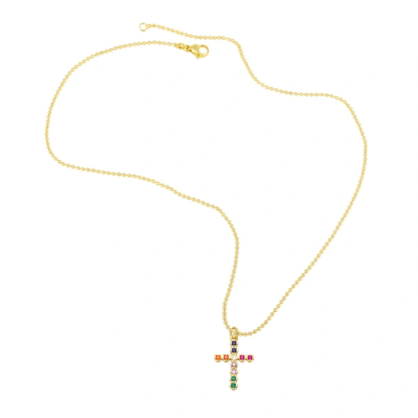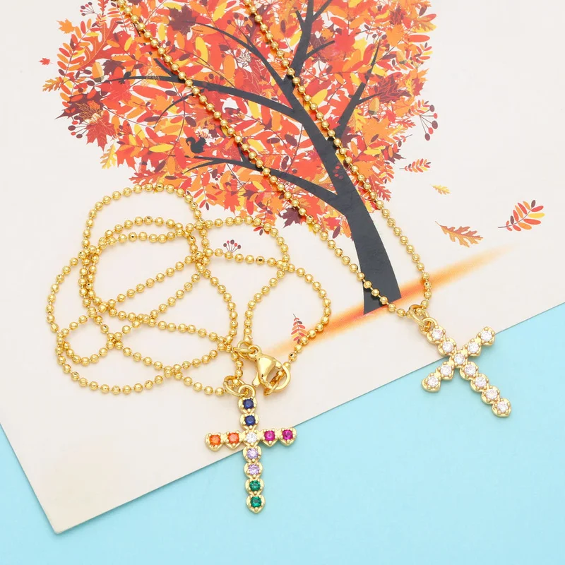 Colar de cruz em forma de coração de personalidade simples, feminino, estilo europeu e americano, design de nicho, corrente de clavícula, corrente de suéter nkb436