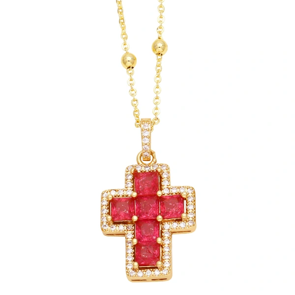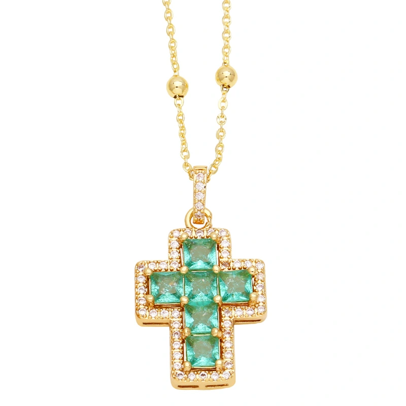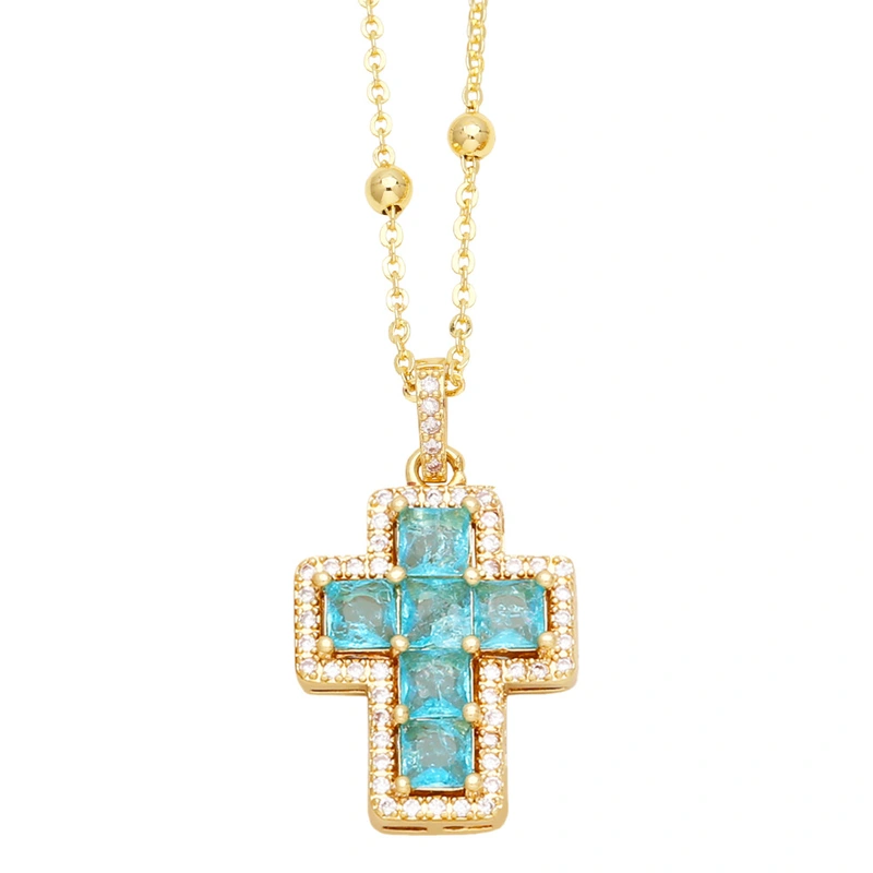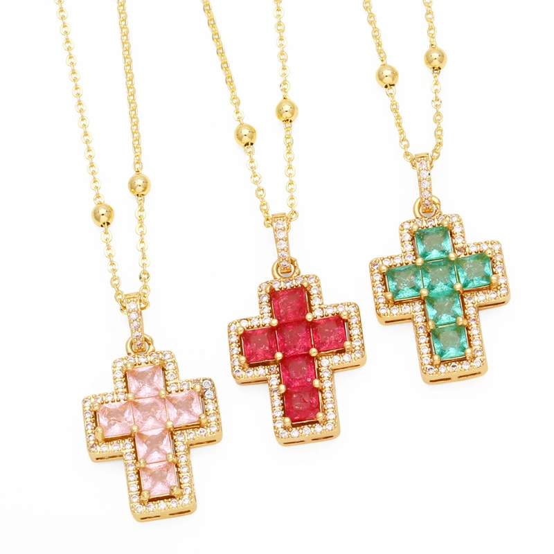 colar de cruz hip-hop europeu e americano feminino pingente de cruz de zircônia colorida hip-hop versátil corrente de clavícula nka073