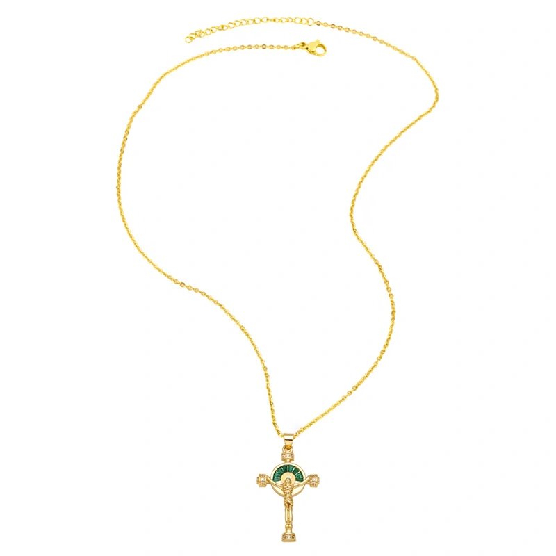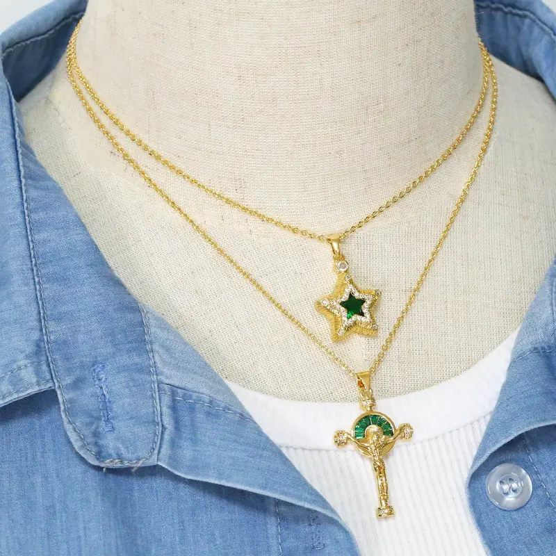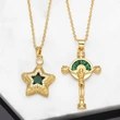 Colar de estrela de cinco pontas, joias populares europeias e americanas, colar retrô leve de luxo com cruz de zircônia verde pavão nkb391