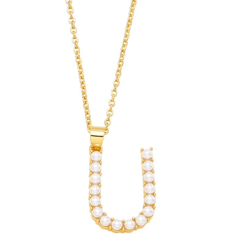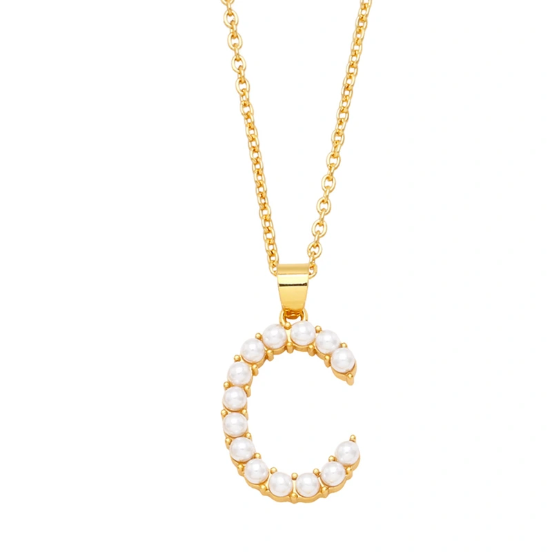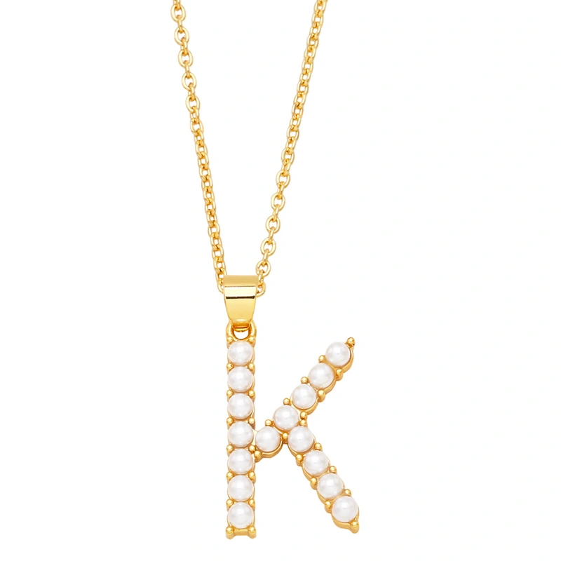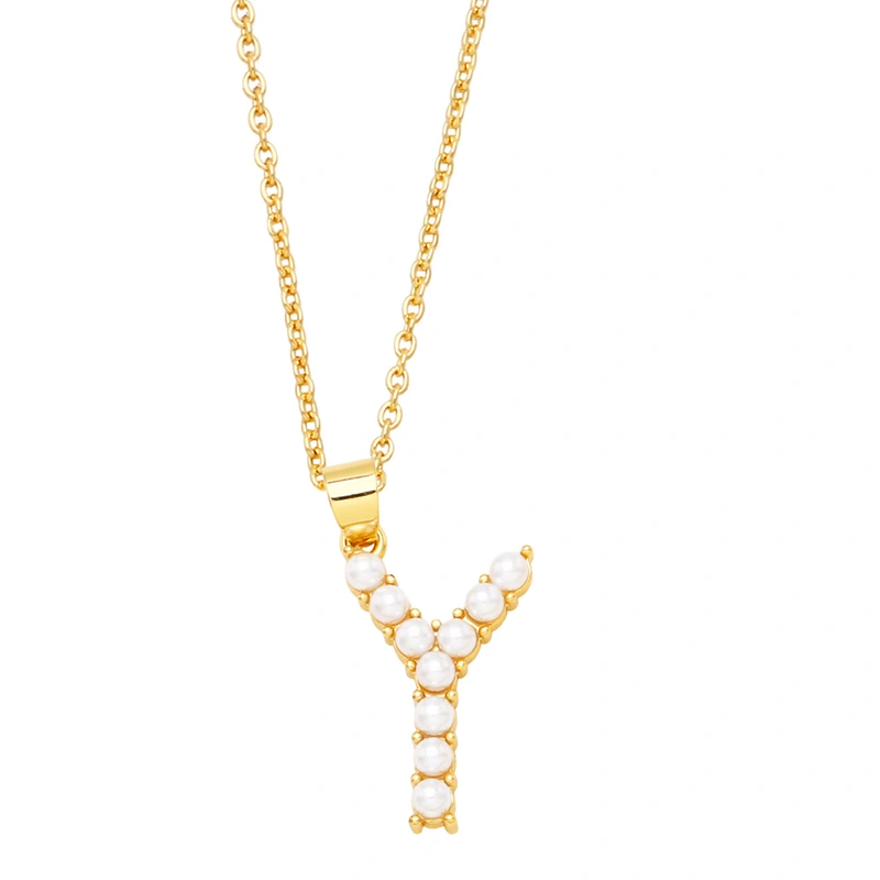 Colar de imitação de pérola com design de nicho, venda imperdível, 26 letras, pingente de letra em inglês, moda europeia e americana, nkb606