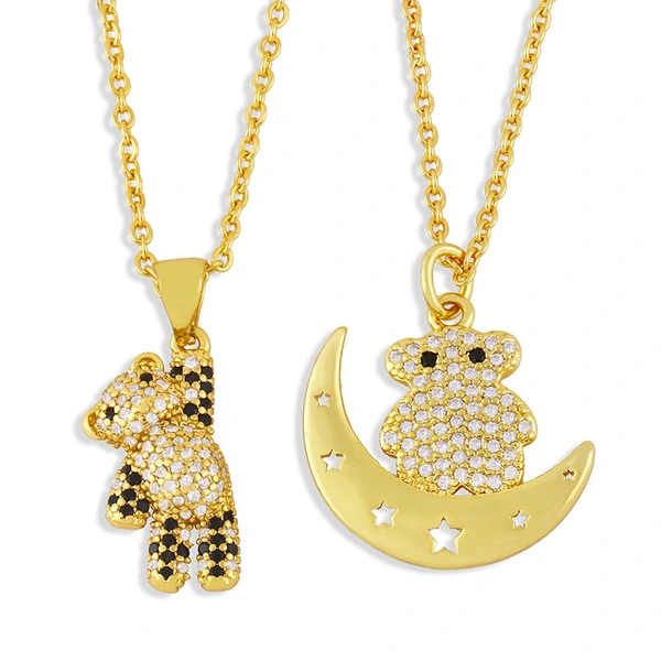 Colar de lua de urso fofo em liquidação, colar curto de clavícula de zircônia, temperamento, rede de fada, colar vermelho nkv94
