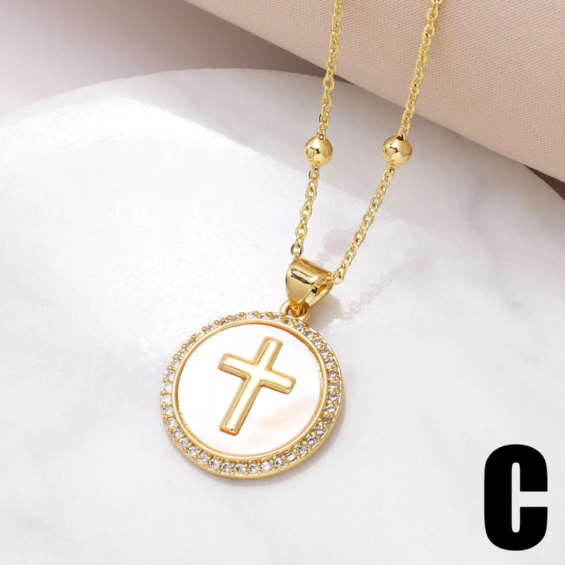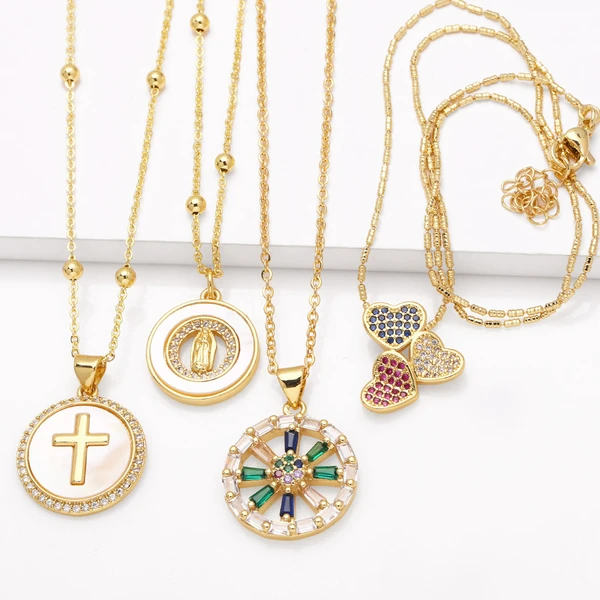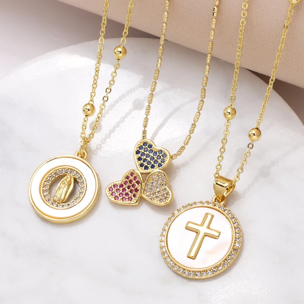 colar de nossa senhora com pingente de cruz banhado a ouro e zircônia, corrente para clavícula nkr83