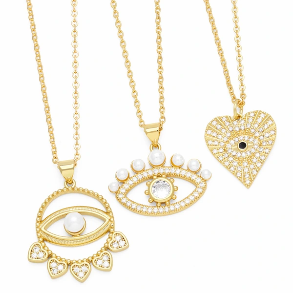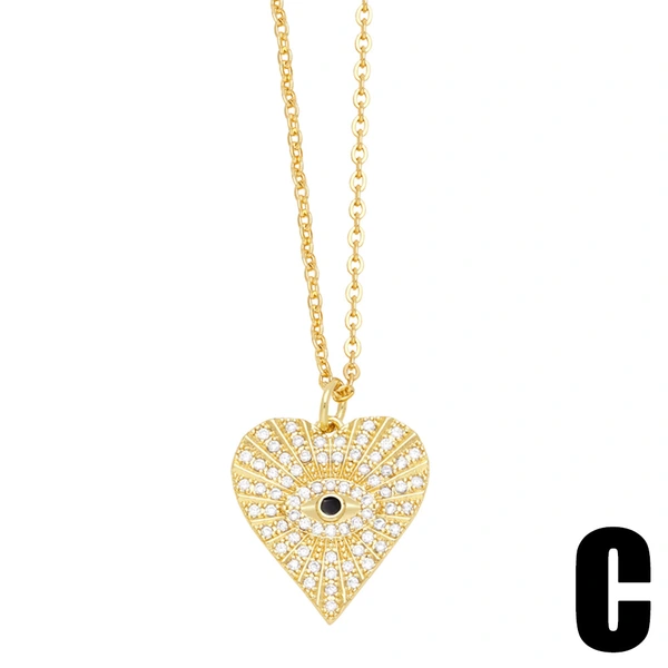 Colar de olho de coração em formato de coração europeu e americano, colar de olho de diabo simples feminino nkn64