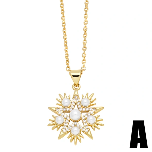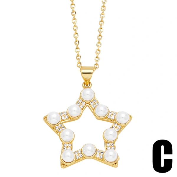 Colar de pérolas com design de nicho, estrela de cinco pontas, temperamento europeu e americano, pingente de amor geométrico nkn66