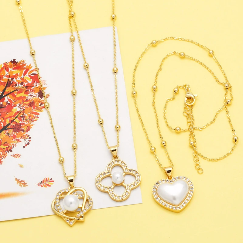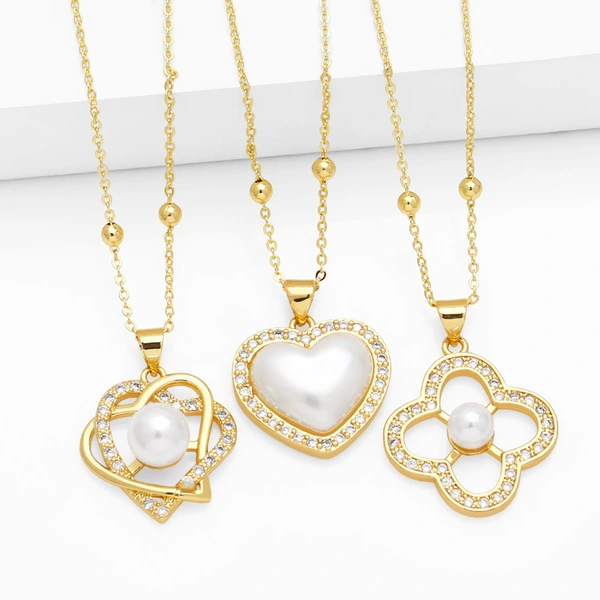 Colar de pérolas de amor em liquidação, estilo europeu e americano, pingente de diamante, corrente para clavícula, nkp03