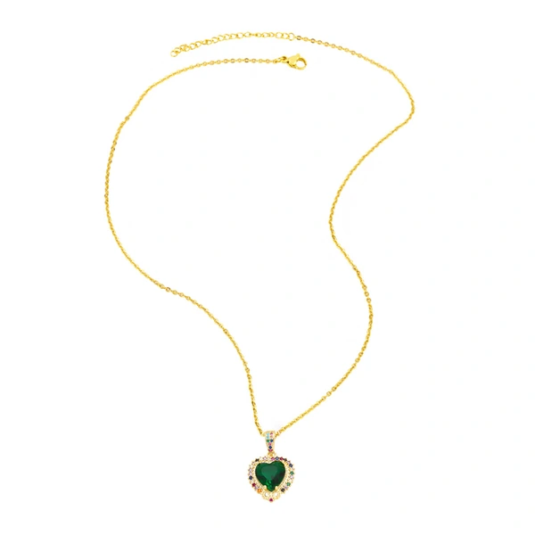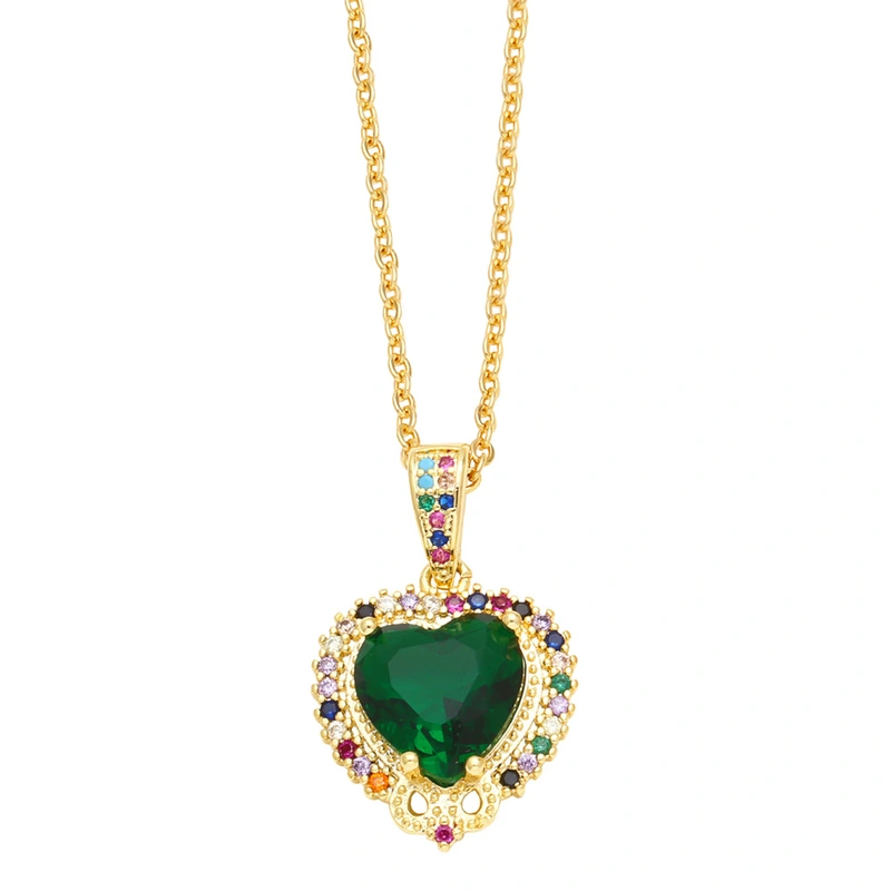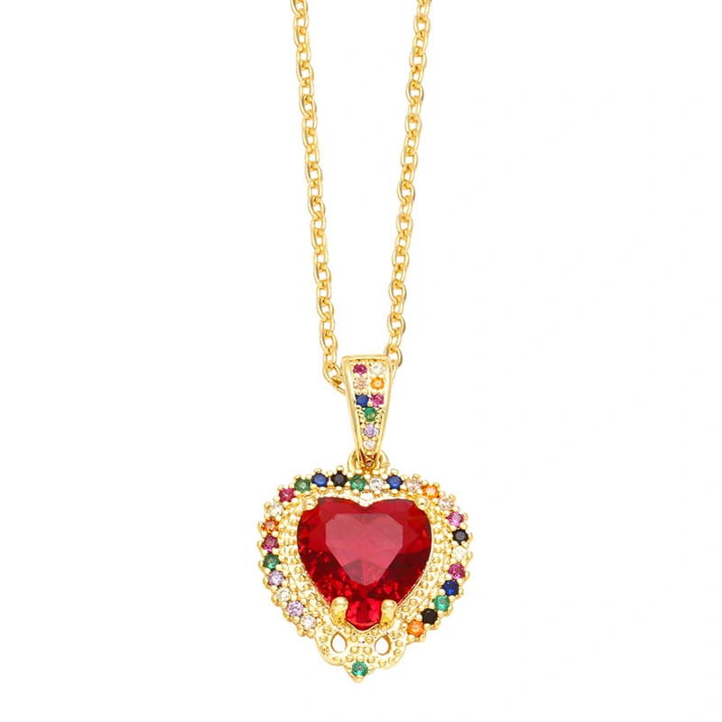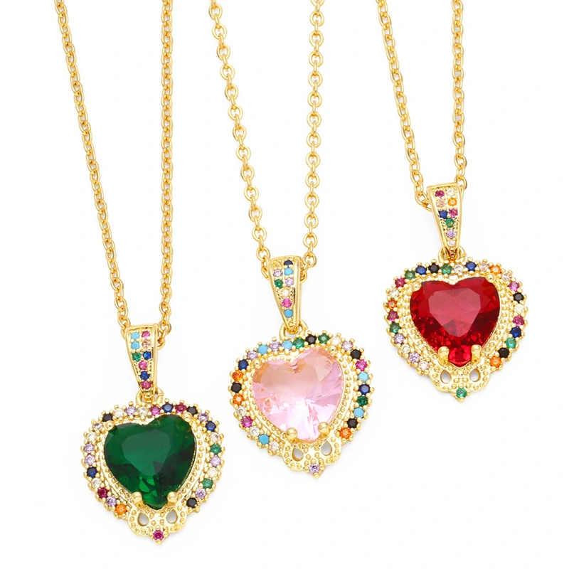 Colar de personalidade de joias europeias e americanas com micro incrustações de zircônia colorida e corrente de clavícula em forma de coração nkr16
