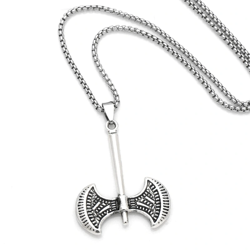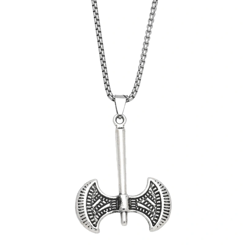 Colar de suéter de aço titânio europeu e americano, colar longo de personalidade masculina estilo hip-hop retrô com machado nkt09