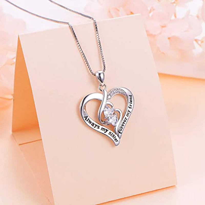 Colar de joias de amor mais vendido na Europa e na América, pendente em forma de coração de camada dupla da moda, colar de boa irmã
