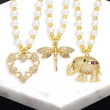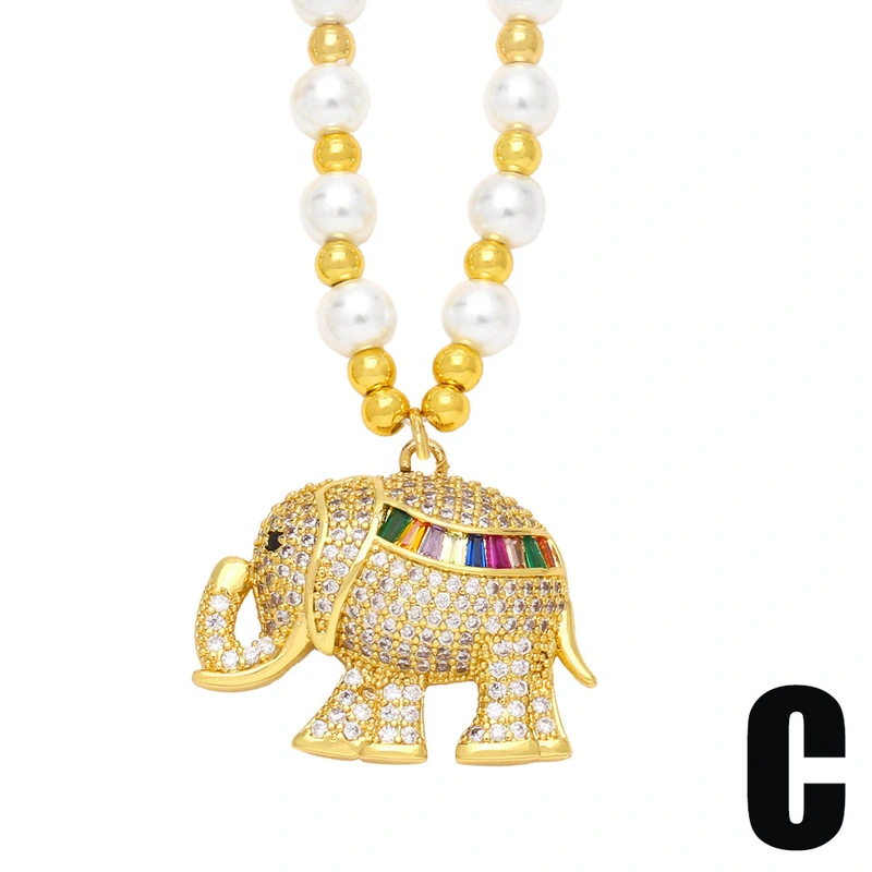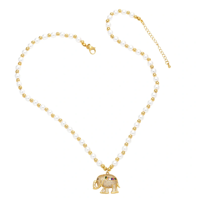 Colar feminino estilo europeu e americano, corrente de pérolas para clavícula, pingente de elefante de luxo de alta qualidade, nkb459