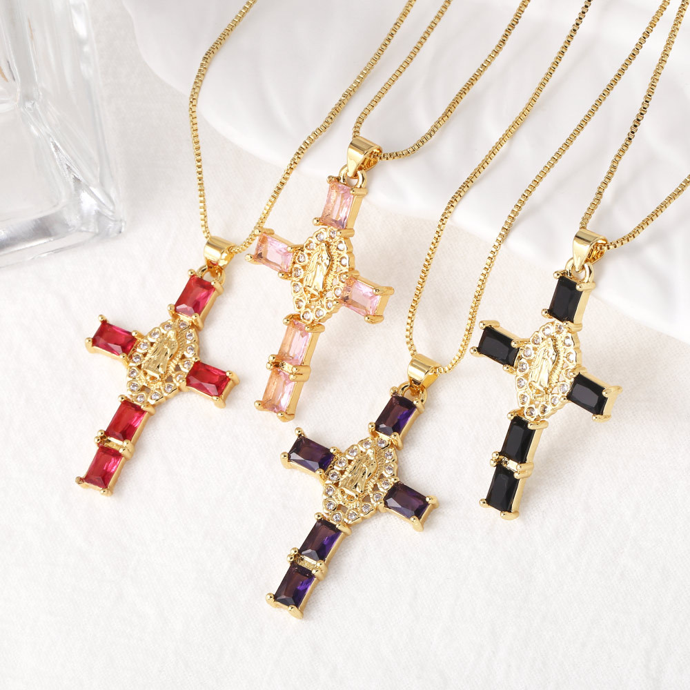 como joia banhado a cobre 18k ouro zircão virgem maria cruz pingente colar nkb108