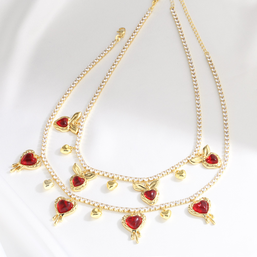 como joia mais vendida pingente de coração de amor banhado a cobre colar de ouro 18k corrente de clavícula nkb574
