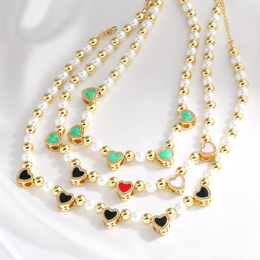 como joia mais vendida colar de pérolas banhado a cobre em forma de coração com contas de ouro 18k corrente de clavícula feminina nku93