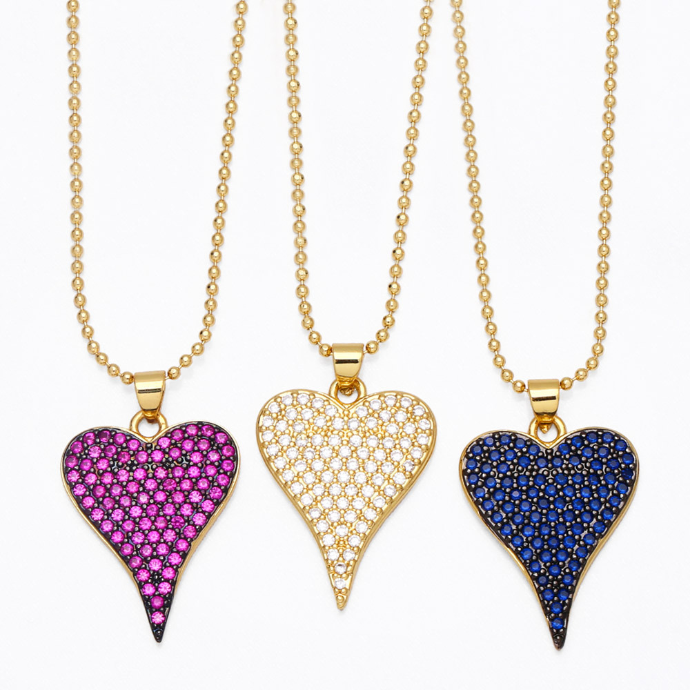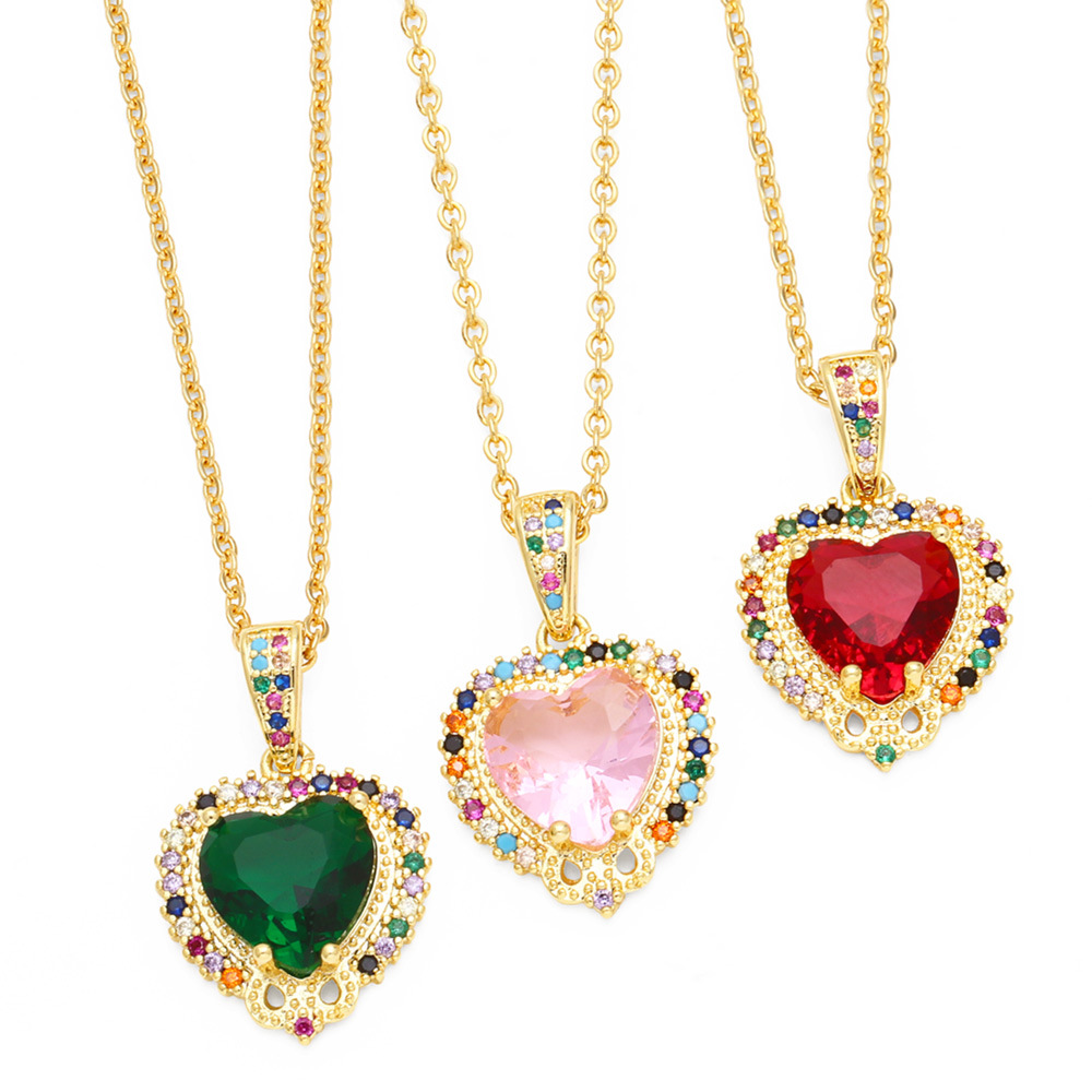 Colar de personalidade de joias europeias e americanas com micro incrustações de zircônia colorida e corrente de clavícula em forma de coração nkr16