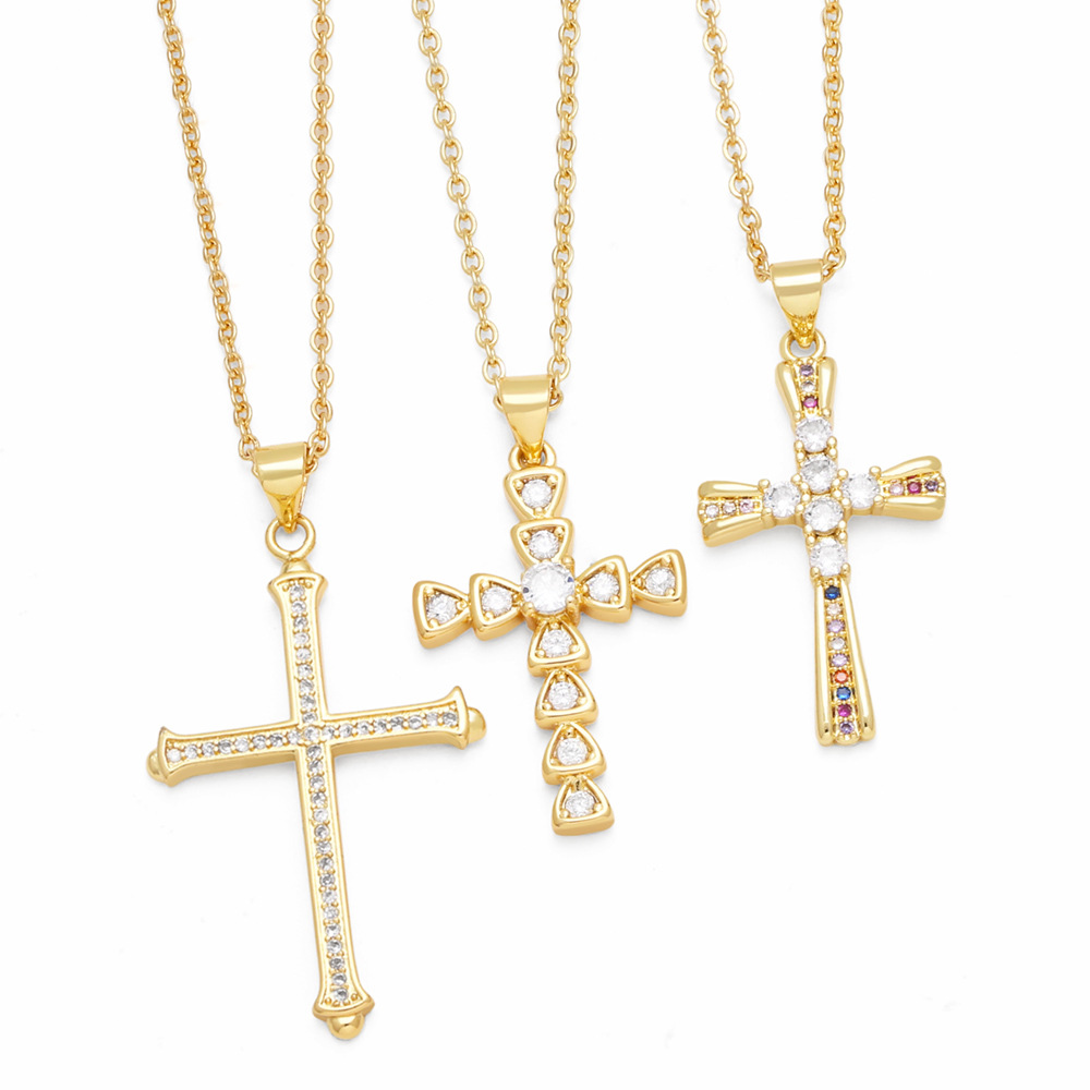 Colar com pingente de cruz de zircônia, joia mais vendida, cor personalizada, simples e versátil, corrente de clavícula nkb631