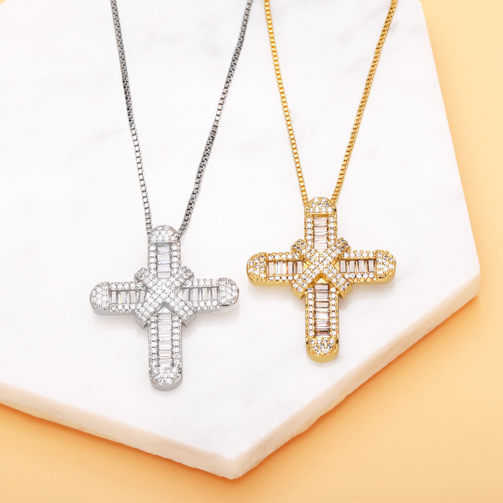 Colar de casal unissex com pingente de cruz de hip-hop com design de nicho e diamantes e zircônias NKB155