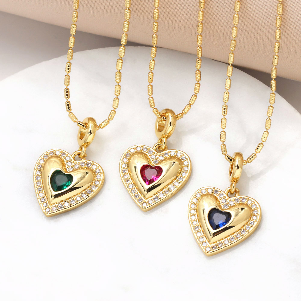 como joia mais vendida colar de coração de amor banhado a ouro com zircônia colorida incrustada corrente de clavícula nkz91