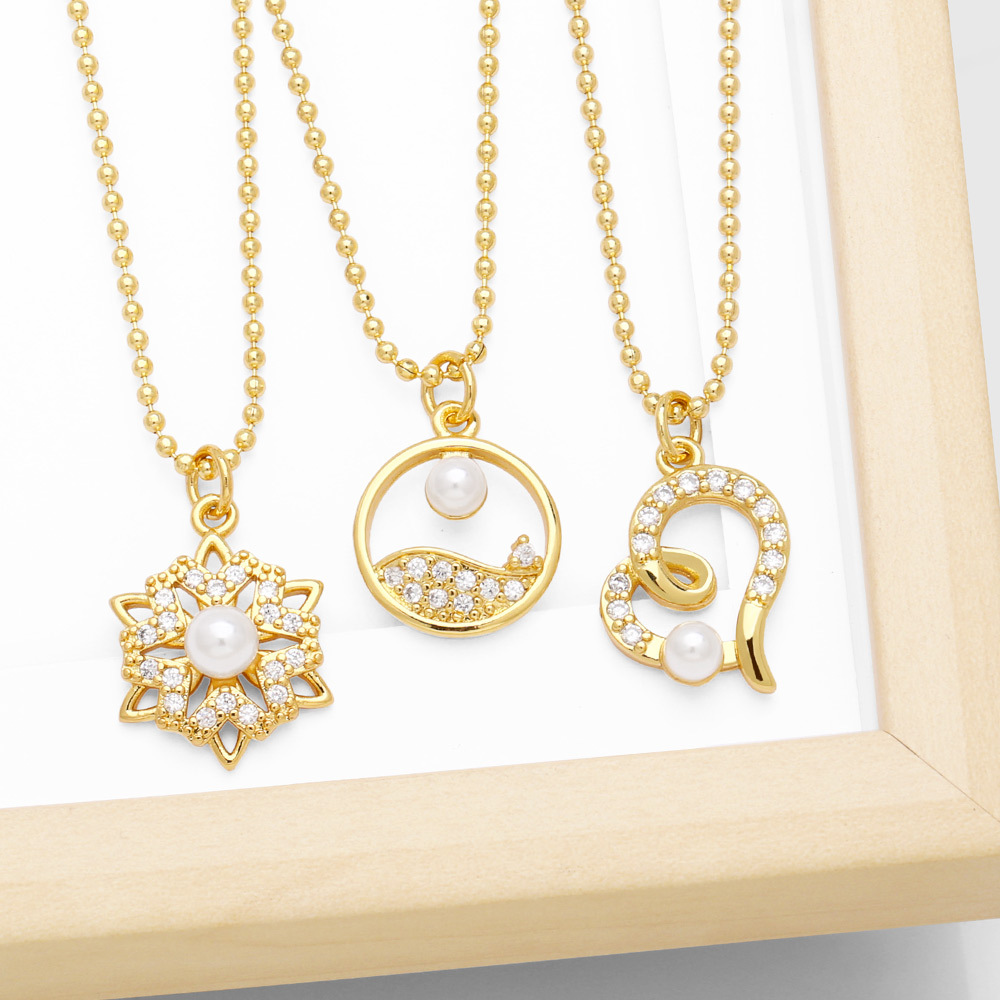 Como joia mais vendida colar com pingente de pérola cruzada feminino banhado a cobre corrente de clavícula de ouro verdadeiro nkq08