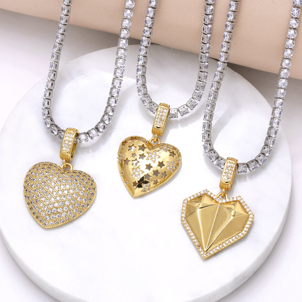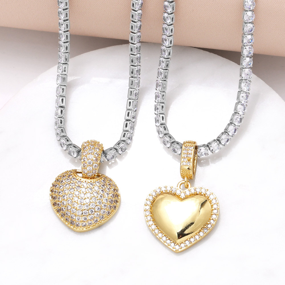 Como joia nova mais vendida colar pingente de amor feminino banhado a cobre ouro 18k corrente de clavícula cheia de zircônia nkr81