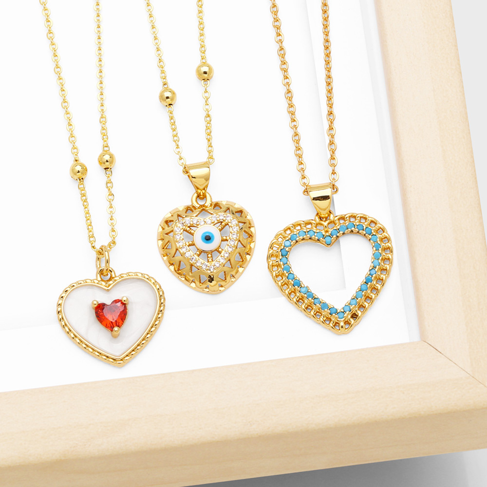 como joia amor pingente colar cobre banhado a ouro real incrustado zircão coração clavícula corrente nkb431