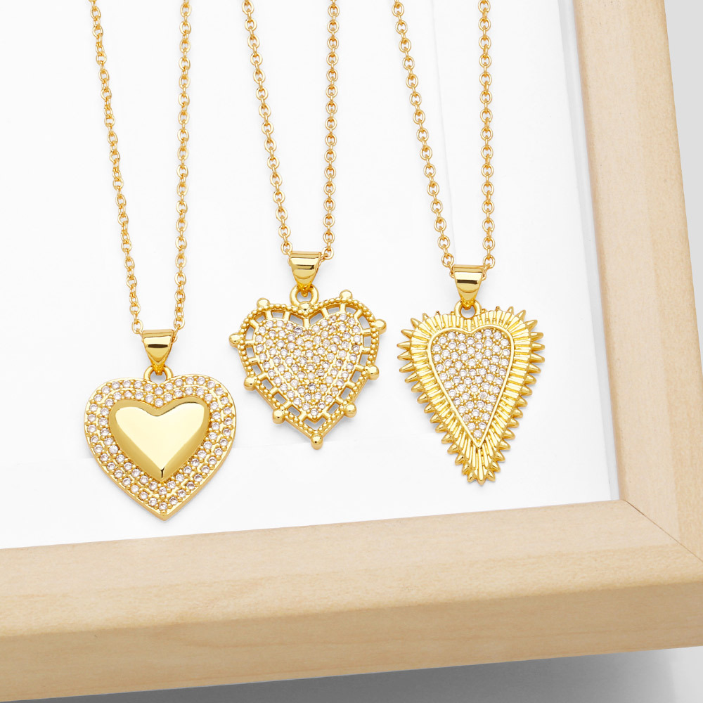 como jóias amor coração pingente colar feminino venda quente cobre banhado a ouro verdadeiro cheio de zircão corrente clavícula nkb074