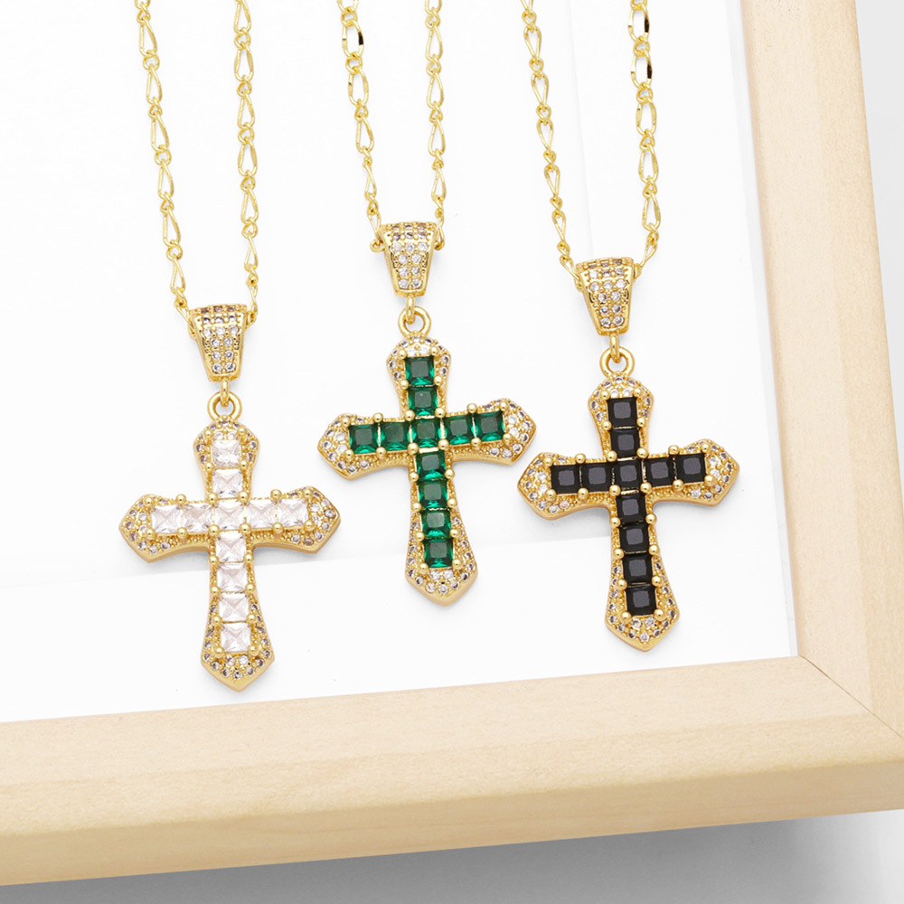 Colar de cruz simples europeu e americano, pingente feminino, personalidade criativa, corrente de clavícula com zircônia incrustada nkb821