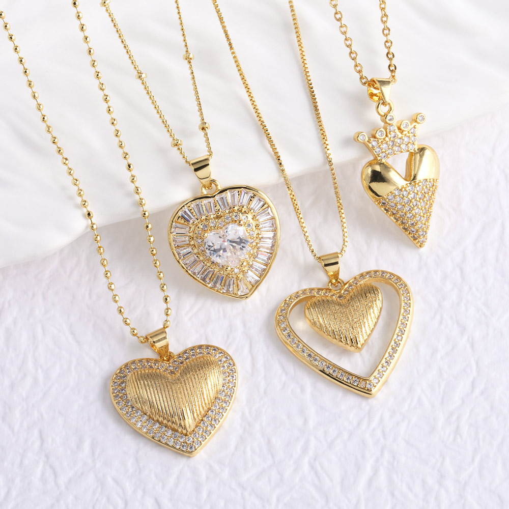 como joias novas mais vendidas colar com pingente de coração banhado a ouro com zircônia cúbica nkb220