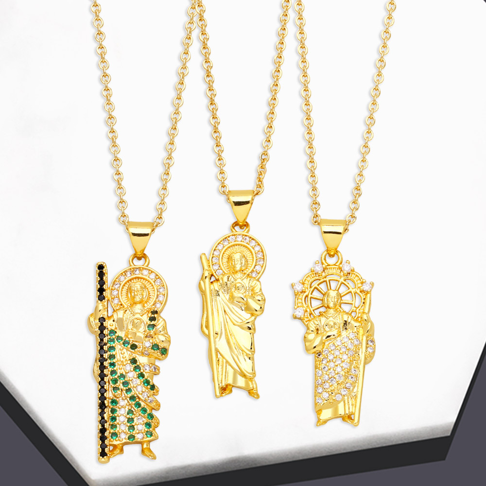 Pingente virgem maria banhado a cobre 18k ouro zircônia acessórios nicho design colar feminino nkb649