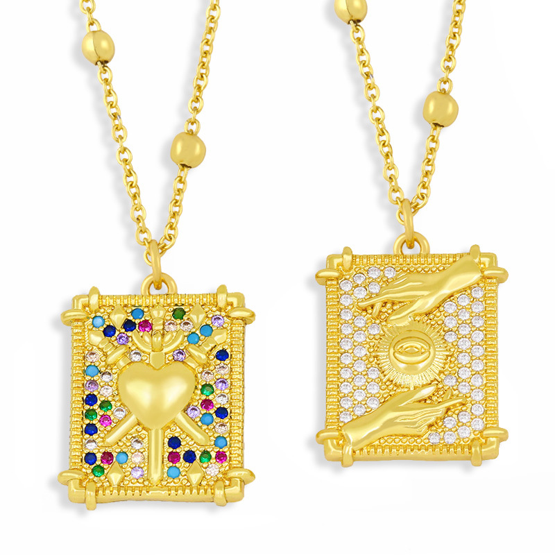 Acessórios de hip-hop europeus e americanos incrustados com zircônia colorida pingente de tarô colar corrente de clavícula nkv78