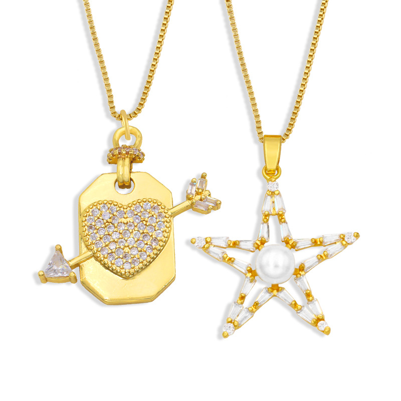 Colar de pérolas de zircônia incrustada com estrela de cinco pontas, estilo feminino, simples, moderno, corrente de clavícula vermelha, colar moderno nkw13