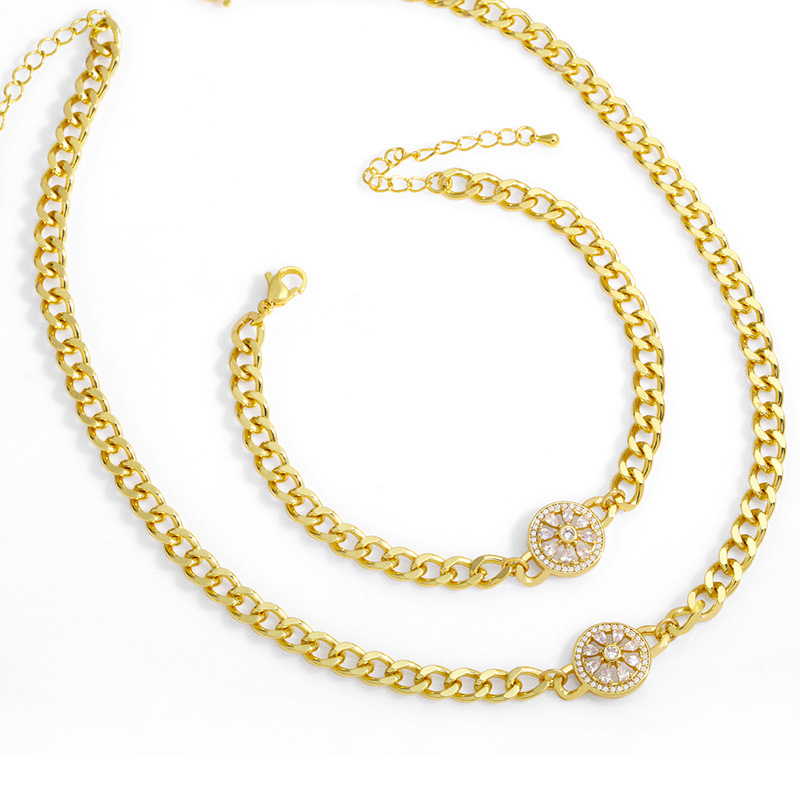 Pulseira de corrente cubana de hip-hop europeia e americana com zircônia incrustada e colar masculino e feminino nkv84