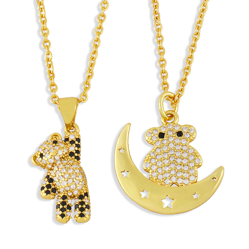 Colar de urso fofo com zircônia em liquidação, pingente de alce europeu e americano, corrente de clavícula, temperamento, rede de acessórios para celebridades nkw30